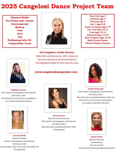 Cangelosi Dance Project is dedicated to providing the students, parents, and the community the art of dance. Kris Cangelosi and Guy Blanchard lead the business.